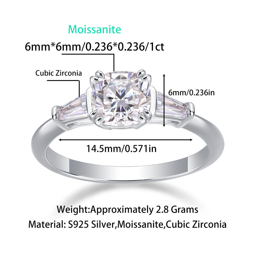 JZR12941: one carat moissanite S925 sterling silver ring Type: ring, finger ring Material: S925 sterling silver Item number: JZR12941 Size: 5, 6, 7, 8, 9 Processing: inlay Inlay material: moissanite Support detection with certificate